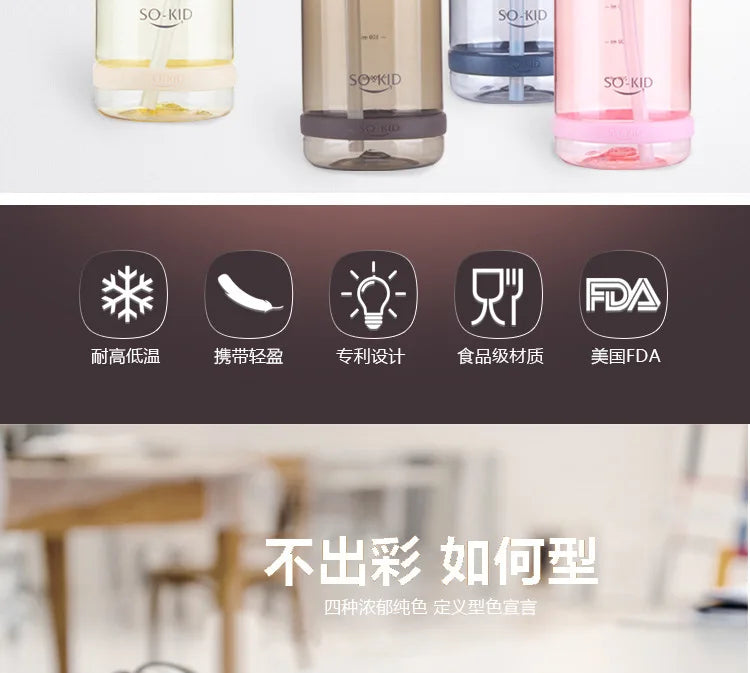 Outdoor Water Bottle with Straw Sports Bottles Leak Proof Eco-friendly Children School With Lid Hiking Camping Plastic BPA Free